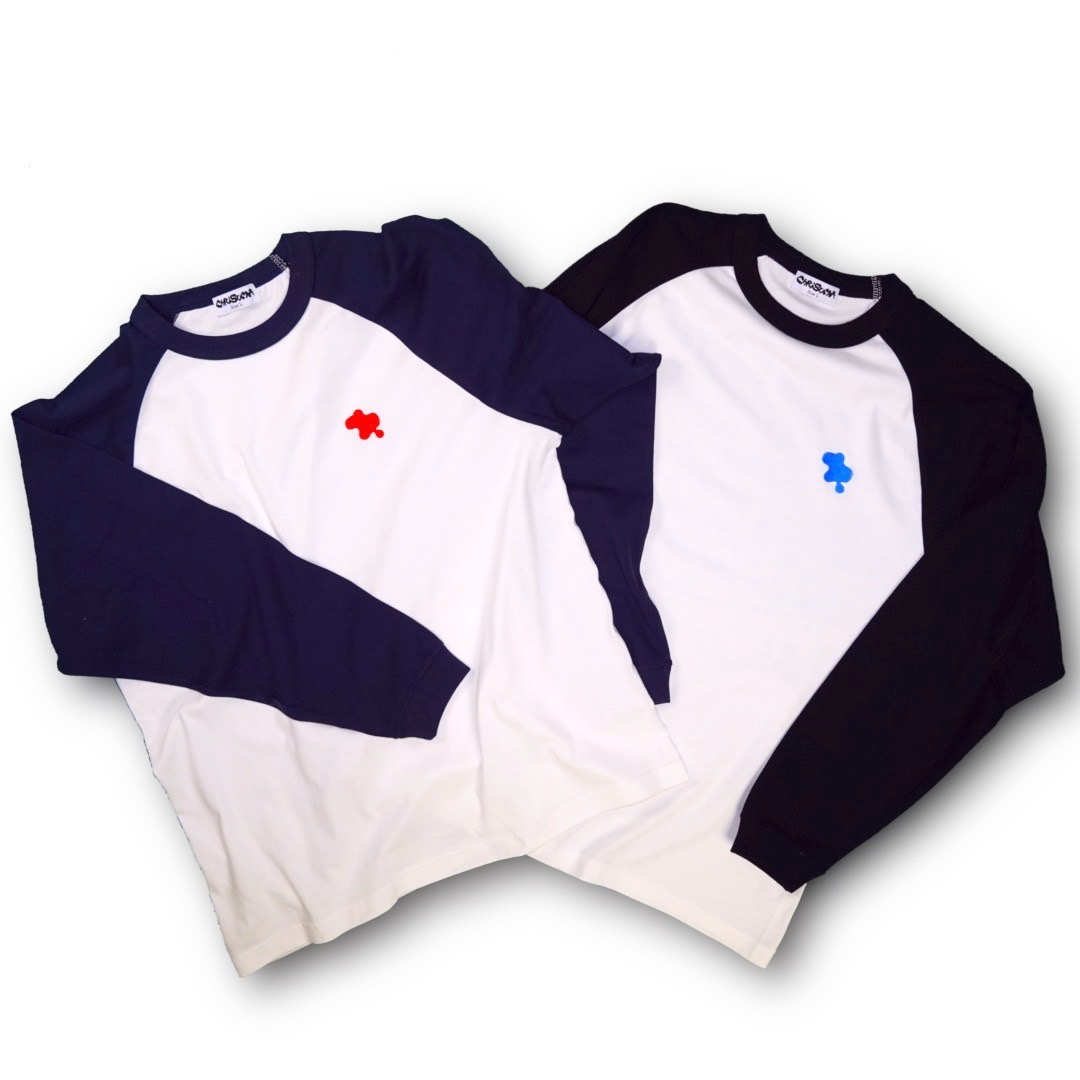 ChRiSUMA初のraglan shirt発売。袖の色がNavyの方は左胸フロントのワンポイントデザインがRed、